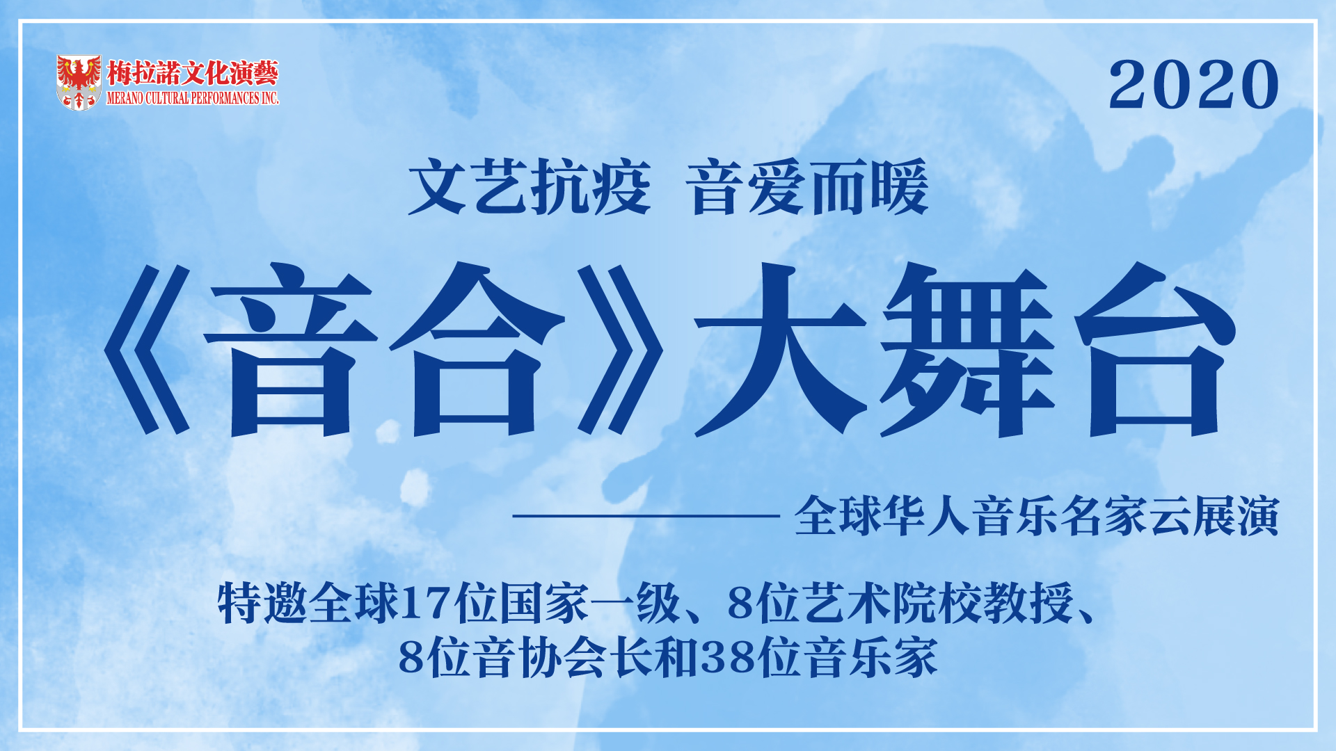 鹰龙传媒与梅拉诺文化演艺联合推出的“文艺抗疫,音爱而暖” 《音合》大舞台—全球华人音乐名家云展演将于美西时间5月23日(周六)下午3点在美国城市卫视YouTube频道亮相。本场活动由当代中国民族音乐家轮番上演、海内外音乐家们共同演绎,特邀全球17位国家一级、8位艺术院校教授、8位音协会长和38位音乐家共同参与录制。
