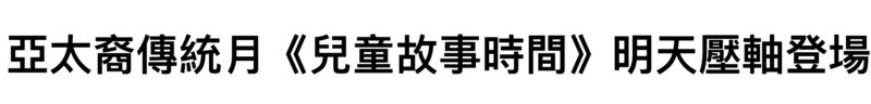 亞太裔傳統月《兒童故事時間》明天壓軸登場