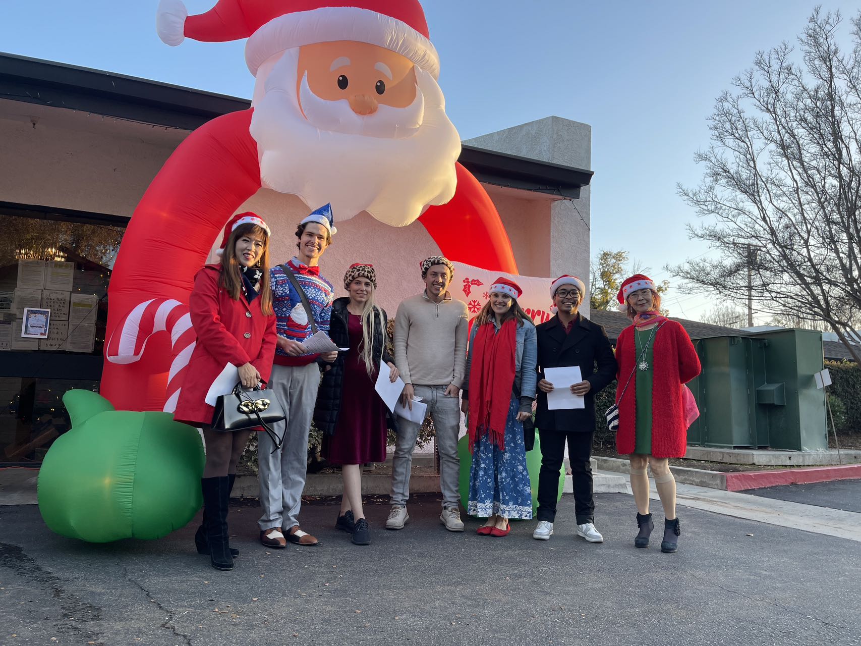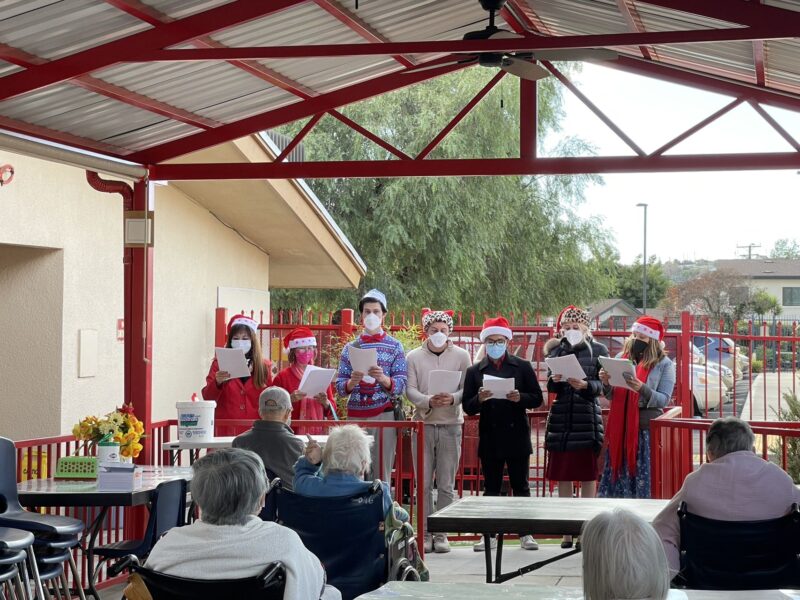 老外讲中文俱乐部成员在San Gabriel Convalescent Center圣盖博疗养中心的户外唱颂歌