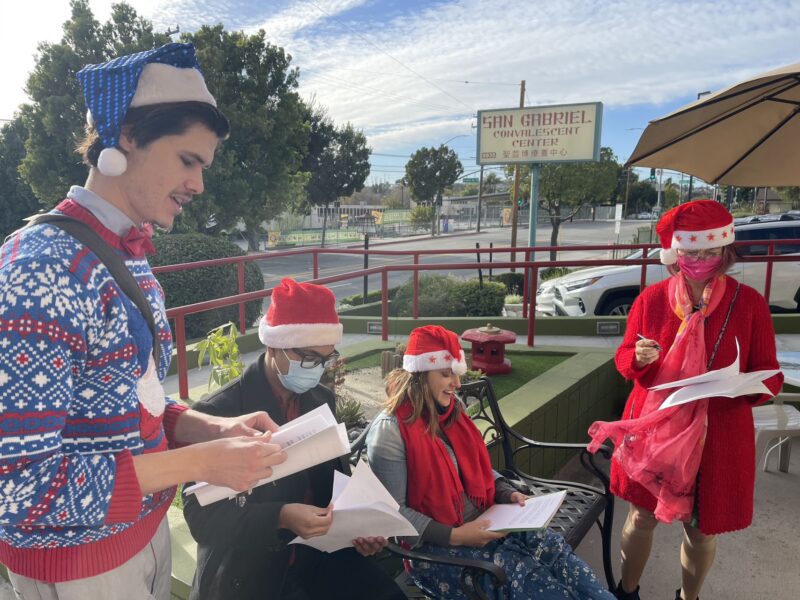 在 San Gabriel Convalescent Center圣盖博康复中心前练习用中文唱《平安夜》)